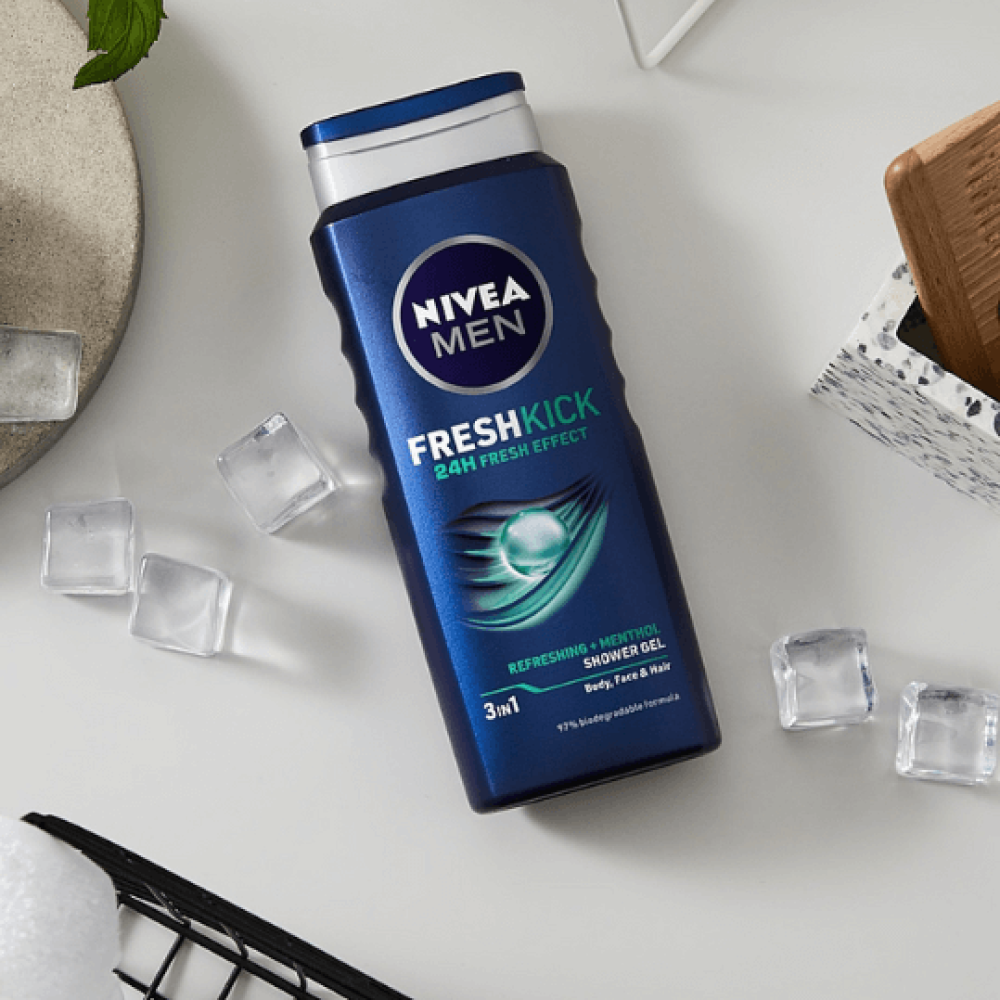 If you're looking for all-day freshness , we offer you NIVEA Men Fresh Kick Shower Shampoo! 💧💪